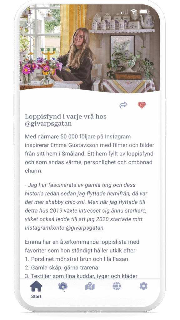 Äntligen en app där allt finns samlat vad gäller loppis, dels var de finns men också tips om återbruk och en egen fynd-lista. Älskar det ♥️”